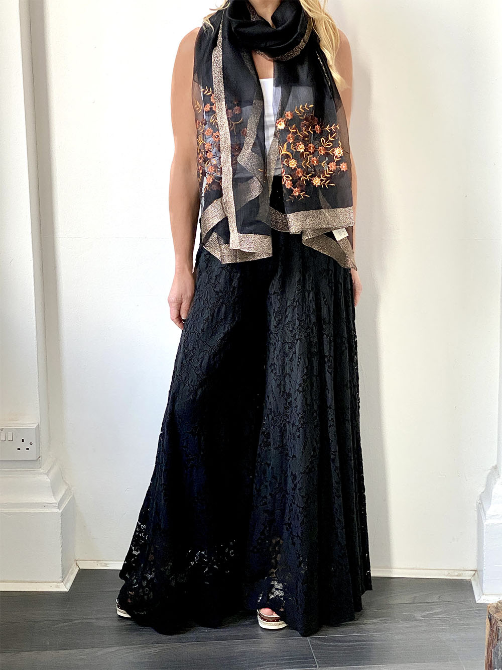 Black & Beaded Silk Scarf (OUT OF STOCK)