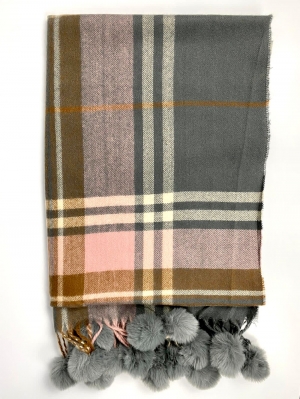 Treat yourself or loved ones, to a little luxury this season with this beautiful and elegant cashmere & cotton mix scarf, whether it's style or warmth you're after this gorgeous grey, pink & brown check pom pom scarf is super soft and one of the most versatile accessory trends of the season. This design will compliment any persons wardrobe.