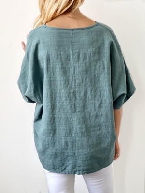 This lightweight top is perfect for them lovely summer days, so step out in style with this pretty teal top, it features just one side pocket and a row of buttons on the other side to give it a unique design.