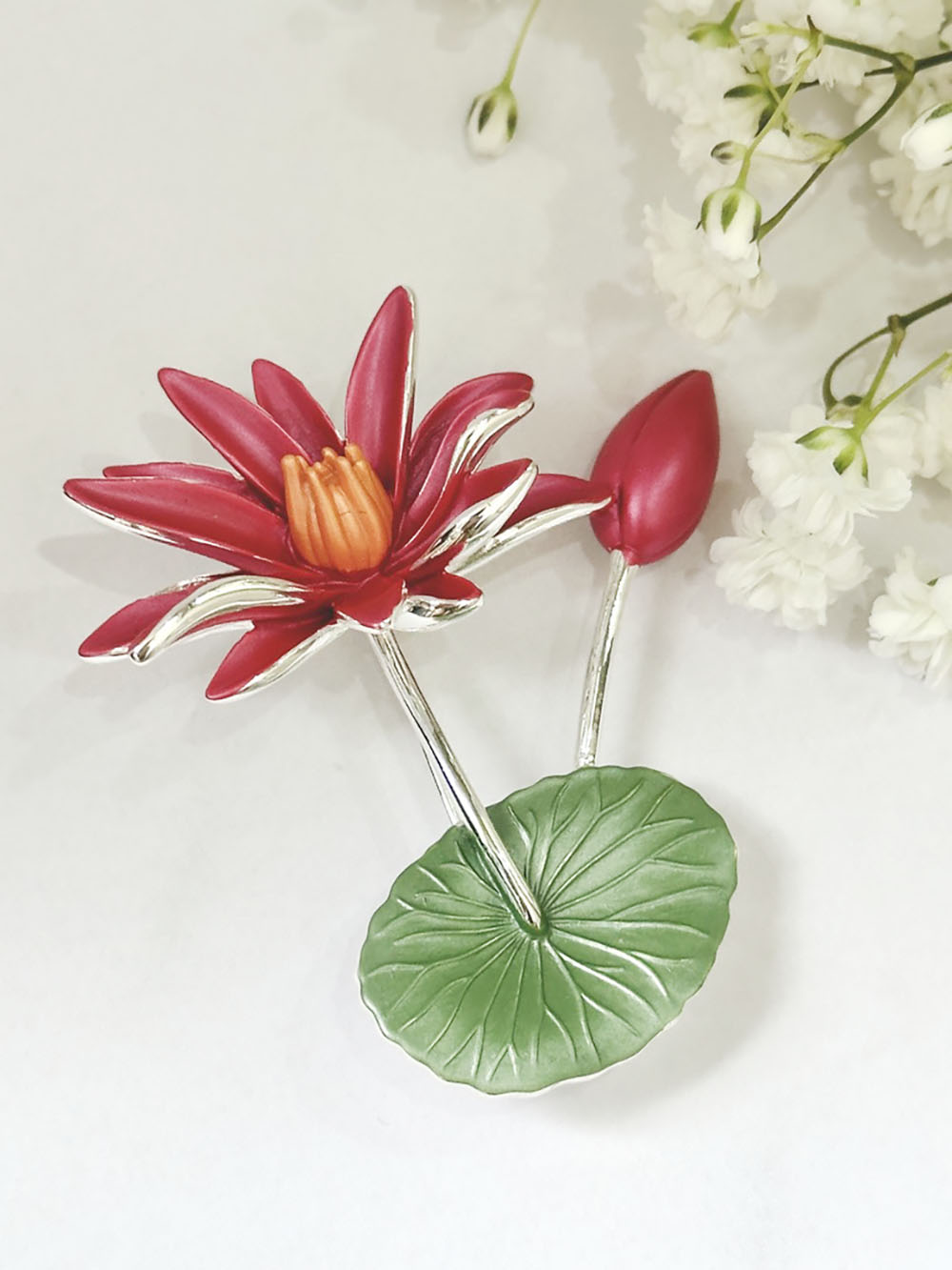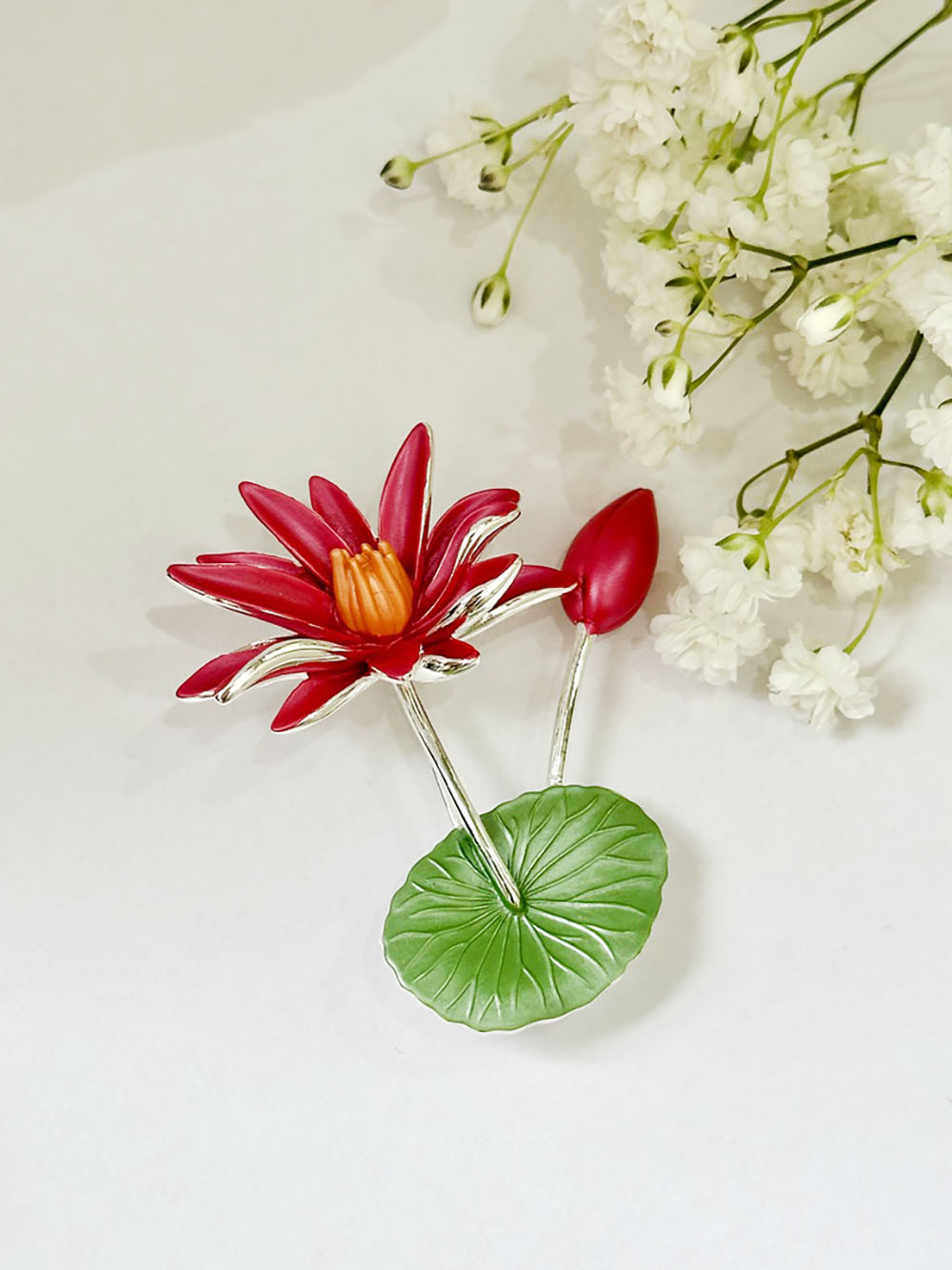 Love Nature with this beautiful exotic Water Lily flower brooch, designed in collaboration with Kew Botanical Gardens, each brooch is hand finished in pink, orange and green enamal.