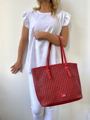 Shop with style and sophistication, this bright red bag is the perfect shopping companion, you get two bags in one keep all your valuables in the zipped part of the bag and your purchases in your shopper bag. Great for the beach.
